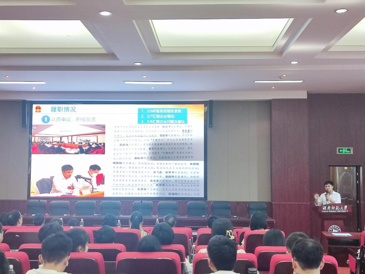 苏胜培教授首先致辞并宣布大会开始。黄水波随后发表讲话。他以自己的亲身经历勉励同学们要有责任心、上进心和自信心,要明确自己的学习目标和就业方向,平时多思考、多总结、多提炼,找到适合自己的学习工作方法;无论是在现阶段的学习生活还是在将来的工作中,都应当秉持一颗勇敢的心,不怕困难,敢于行动,只有积极进取方能取得成功。他还深情寄语各位毕业生,要牢记习近平总书记在二十大报告中的殷切嘱托,做有理想,敢担当,能吃苦,肯奋斗的新时代青年;要进一步增强责任使命与担当意识,继承五四传统,弘扬五四精神,肩负起民族复兴的重任,展现师大人的风采。