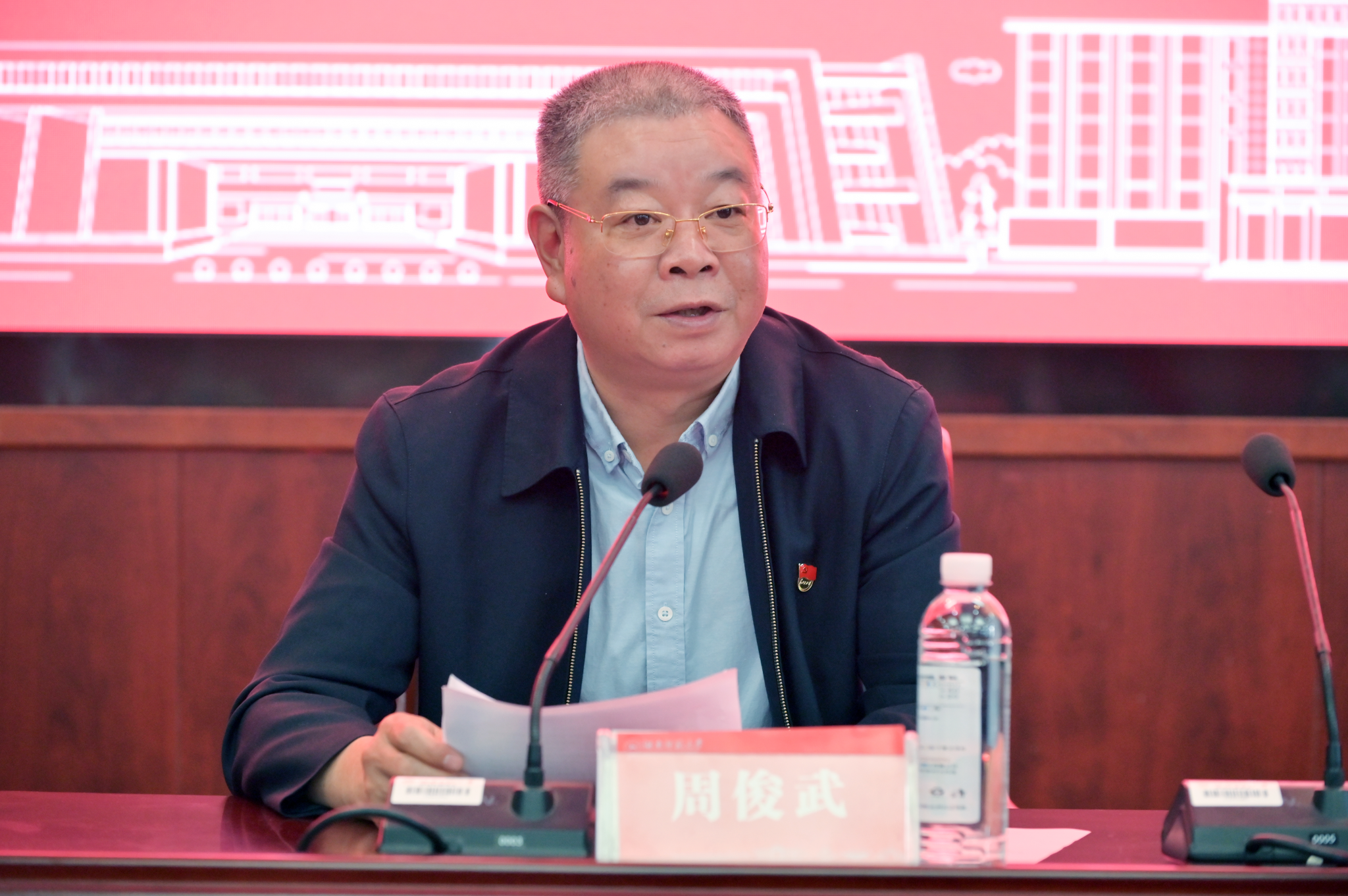 随后,周俊武作重要讲话,他强调,全体教职工要提高思想认识,深刻理解新时代巡察工作的重要意义。他提出以下几点要求:一是要提高政治站位,深刻认识并充分发挥巡察对贯彻落实党中央和省委重大决策部署的重要保障作用、密切联系群众的重要纽带作用、推进党的建设新的伟大工程的重要支撑作用;二是要强化政治担当,在新征程中更好履行职责使命。高校是为党育人、为国育才的主阵地,承担着培养德智体美劳全面发展的社会主义建设者和接班人的重要责任;三是要认真领会总书记关于培养什么人、怎样培养人、为谁培养人等重要论述,落实立德树人根本任务;四是要加强党的领导,发挥好党委把方向、管大局、保落实作用;五是要严守政治纪律和政治规矩,继承和弘扬党的优良传统,严肃党内政治生活,营造风清气正的政治生态;六是要扎实推进清廉单元建设,充分发挥全面从严治党的引领保障作用,坚决纠正、防范不正之风,规范权力运行,防范廉洁风险;七是要自觉接受监督,坚持与巡察组同题共答、同向发力,以巡察为契机推动各项事业高质量发展。