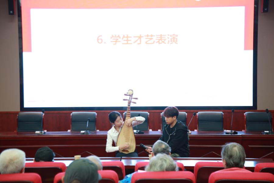 后,全体离、退休教师一起录制了祝福视频,为校庆送上了化院人的诚挚祝福学生代表为老师们带来了诗歌朗诵、琵琶弹奏等才艺表演。老同志们欢聚一堂,畅聊学院的新气象和丰富多彩的退休生活,漫步美丽的秋日校园,兴致勃勃地参观了校天文馆,度过了一个欢乐祥和的节日。