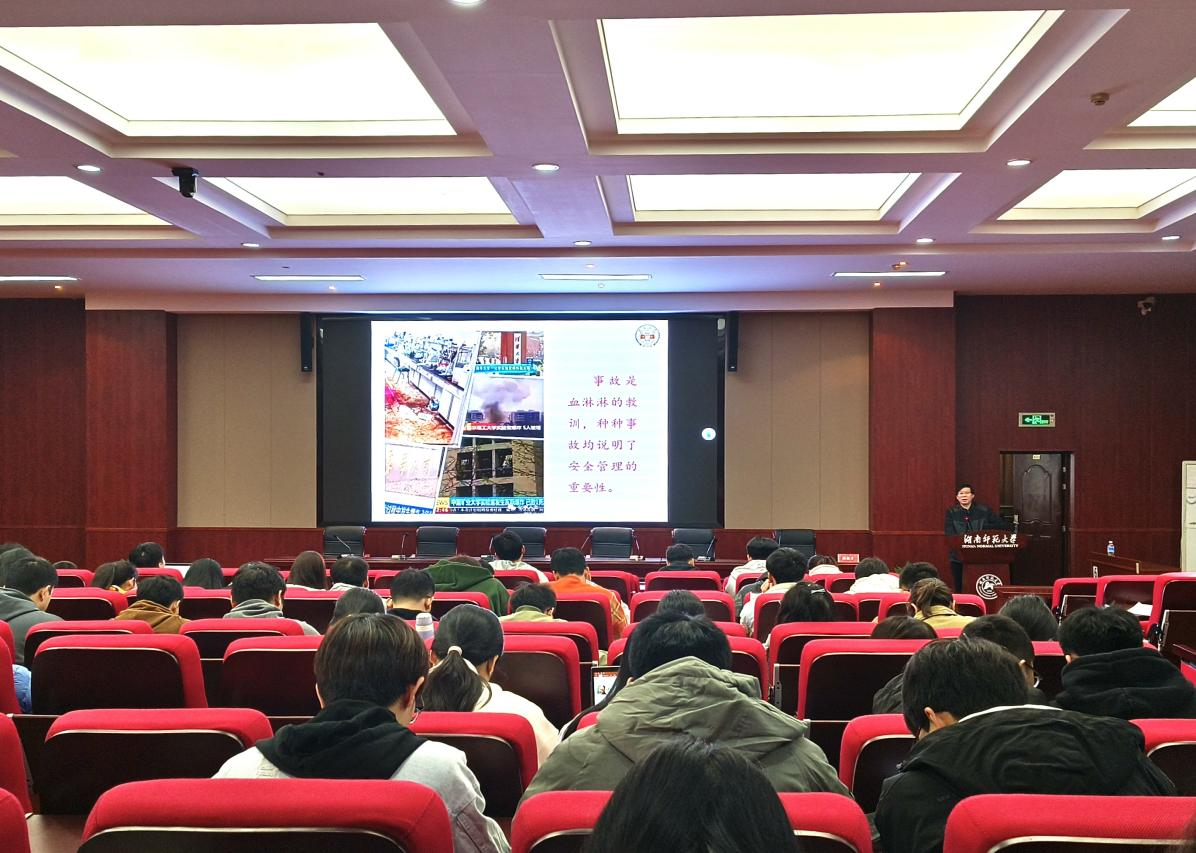 2023年11月16日下午,湖南大学郭栋才教授受邀做客英国365集团,在达嘉维康报告厅带来题为《高校化学实验室安全管理与隐患排查》的报告。报告会由副院长谭蓉教授主持,2023级研究生新生聆听了此次报告。