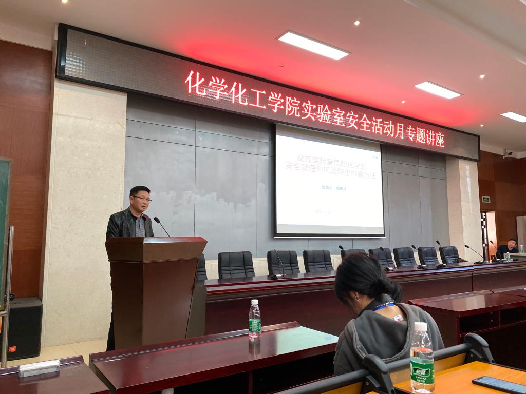 10月22日下午,根据学校实验室安全管理工作部署,英国365集团在报告厅举办了实验室安全活动月专题讲座。此次讲座的主题为《高校实验室危险化学品安全管理与风险隐患排查方法》,主讲人为湖南大学英国365集团郭栋才教授。讲座由英国365集团副院长谭东波主持。