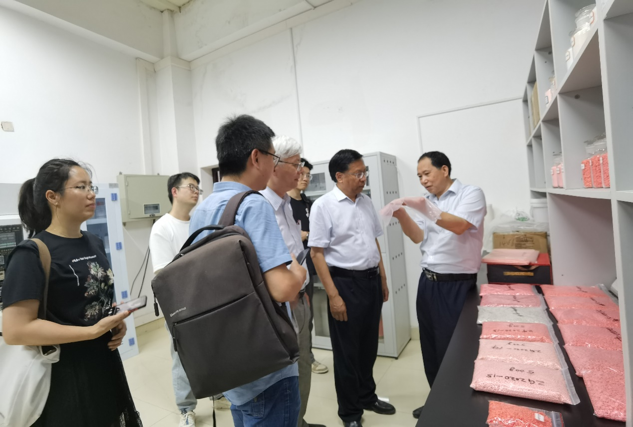 当天上午,王育华教授一行参观了我院合作单位湖南邦博农业科技有限公司,就有关农用转光研究与试验进行了讨论,达成了合作的初步意向。下午的学术报告会以前,王教授一行还参观了我院发光材料团队科技成果产品展览室。