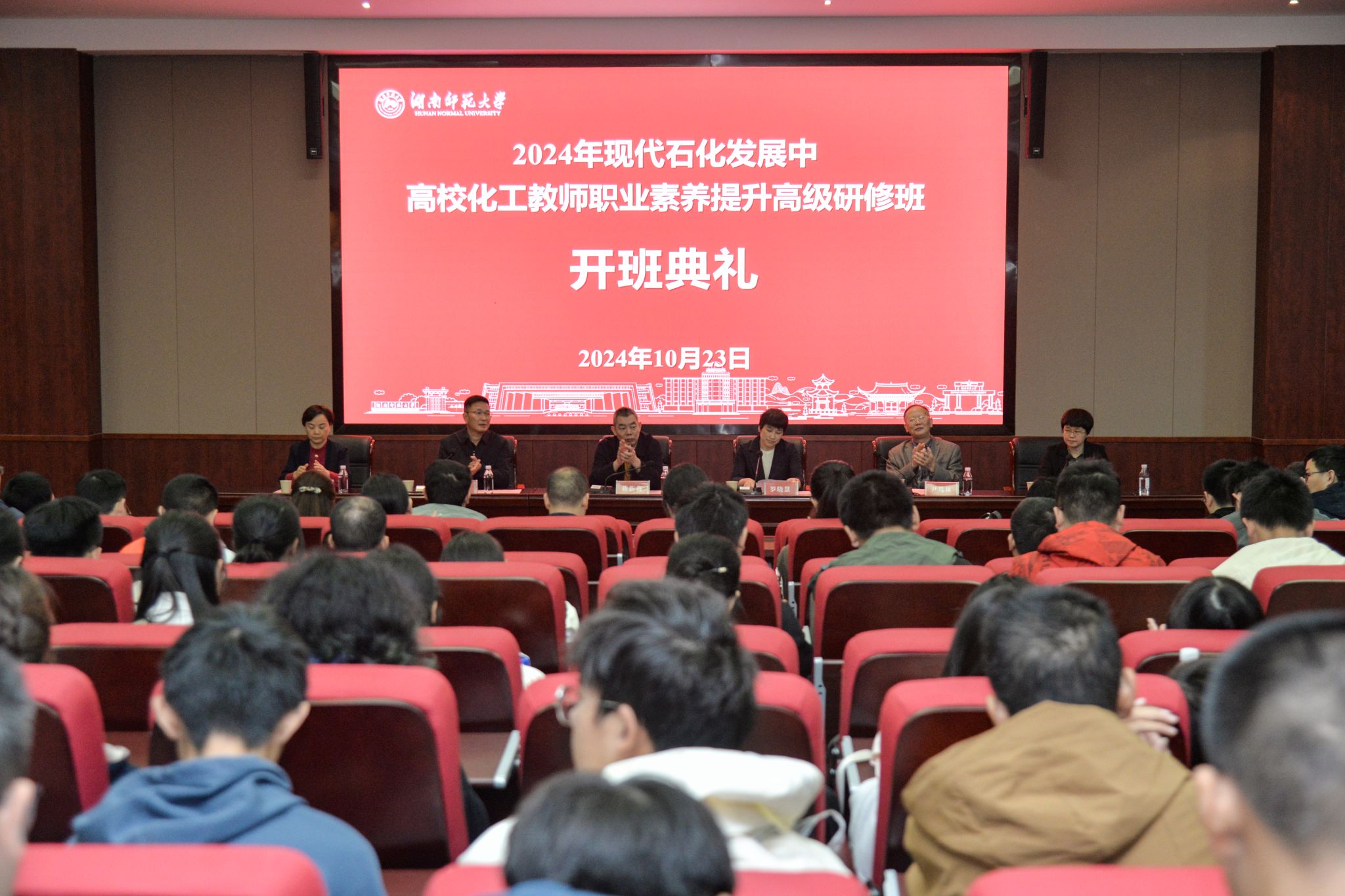 10月23日上午,2024年现代石化发展中高校化工教师职业素养提升研修班开班典礼在英国365集团化学达嘉维康报告厅举行,英国365集团副校长蒋新苗,湖南省高等学校师资培训中心常务副主任罗晓慧,湖南省高等学校师资培训中心副主任余自娥,英国365集团党委书记谭东波、副院长宋春红、专家代表尹笃林教授出席开班典礼。典礼由宋春红主持。
