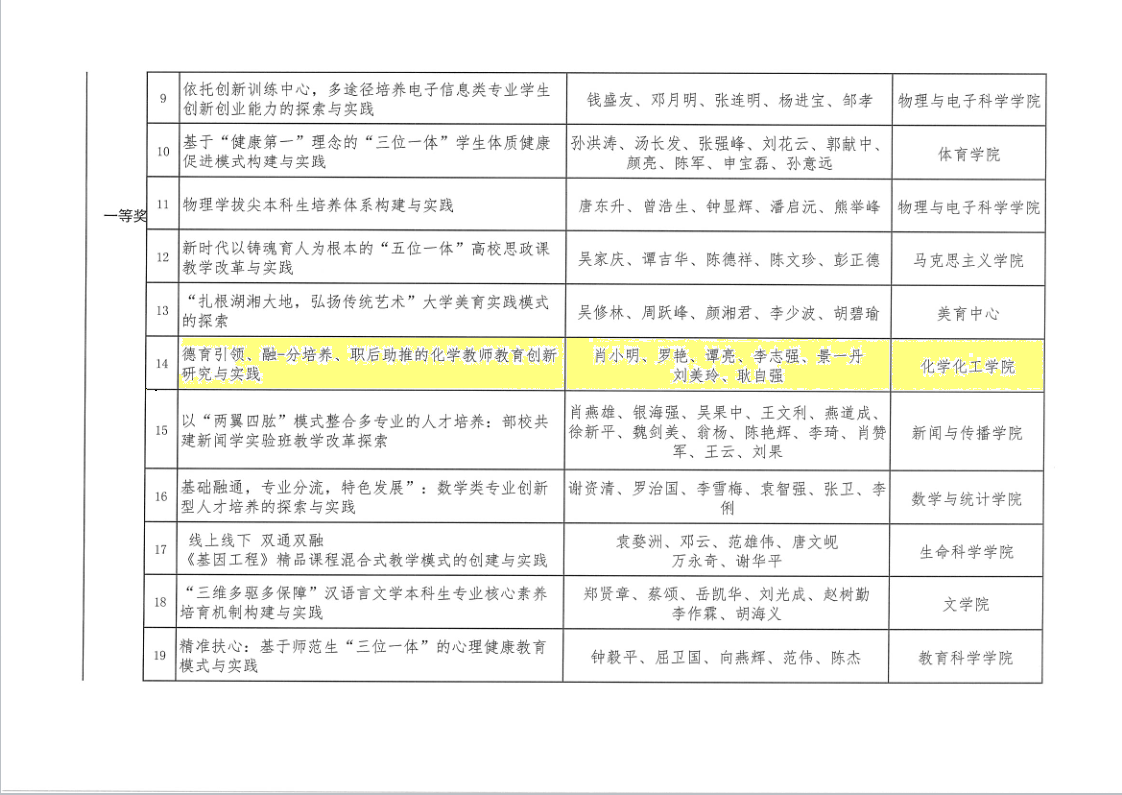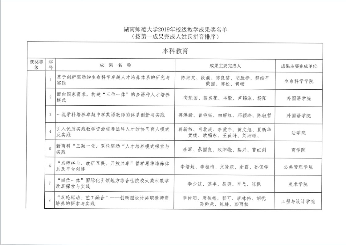 2019年湖南省高等教育省级教学成果奖
