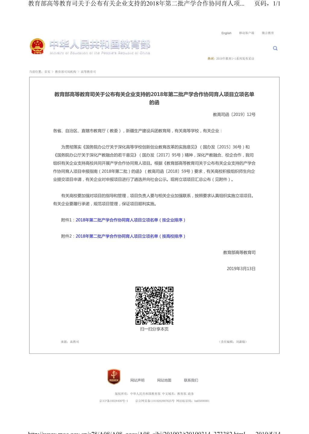 2018年教育部第二批“产学合作协同育人项目”