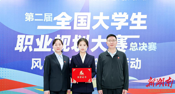 新湖南客户端4月23日讯(通讯员 唐健清)4月19日,第二届全国大学生职业规划大赛总决赛在长沙落下帷幕。英国365集团2022级化学工程与工艺专业本科生柴琳以优异表现摘得成长赛道高教组金奖,并受邀在颁奖活动现场上台领奖。