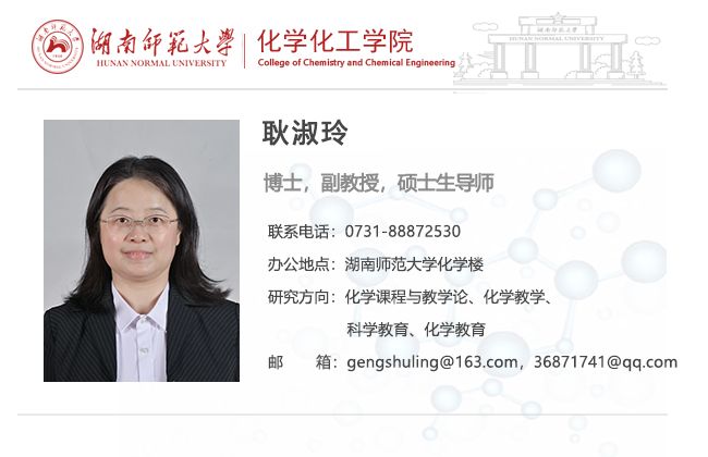 2002.7—2005.12华中师范大学化学学院,教师,化学教育教学和研究工作